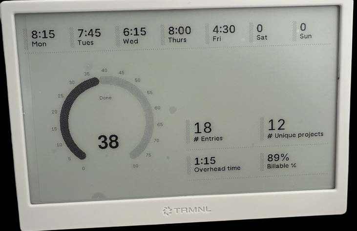 I picked up a TRMNL earlier this year and have enjoyed experimenting with it. It’s an e-ink display with a battery and microcontroller in a sleek case, complete with a wall-mount hook.